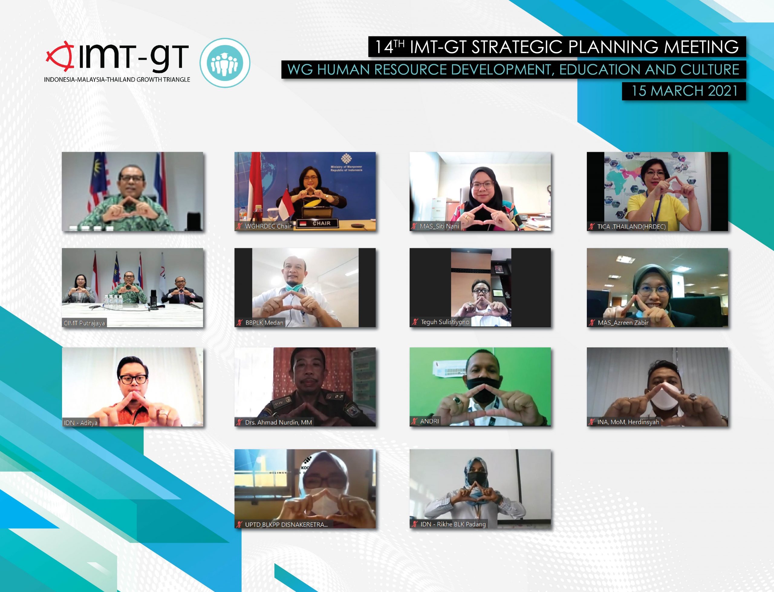 15 March 2021, Virtual Meeting on IMT-GT Strategic Planning Meeting (SPM) Breakout Session on Working Group of Human Resource Development, Education, and Culture was held. The Standing Chair of IMT-GT WG on HRD, Education and Culture is Ms. Indah Anggoro Putri, Head of International Cooperation Bureau, Ministry of Manpower the Republic of Indonesia. The meeting also attends by Head delegation of Malaysia, Mrs. Siti Nani Shaarani Principal Assistant Secretary, Policy Division, Ministry of Human Resources Malaysia, Head of Delegation of Thailand Mrs. Arunee Hiam, Director for Partnership for Development Bureau Thailand International Cooperation Agency (TICA) Ministry of Foreign Affairs of Thailand and Director of CIMT Mr. Firdaus Dahlan.