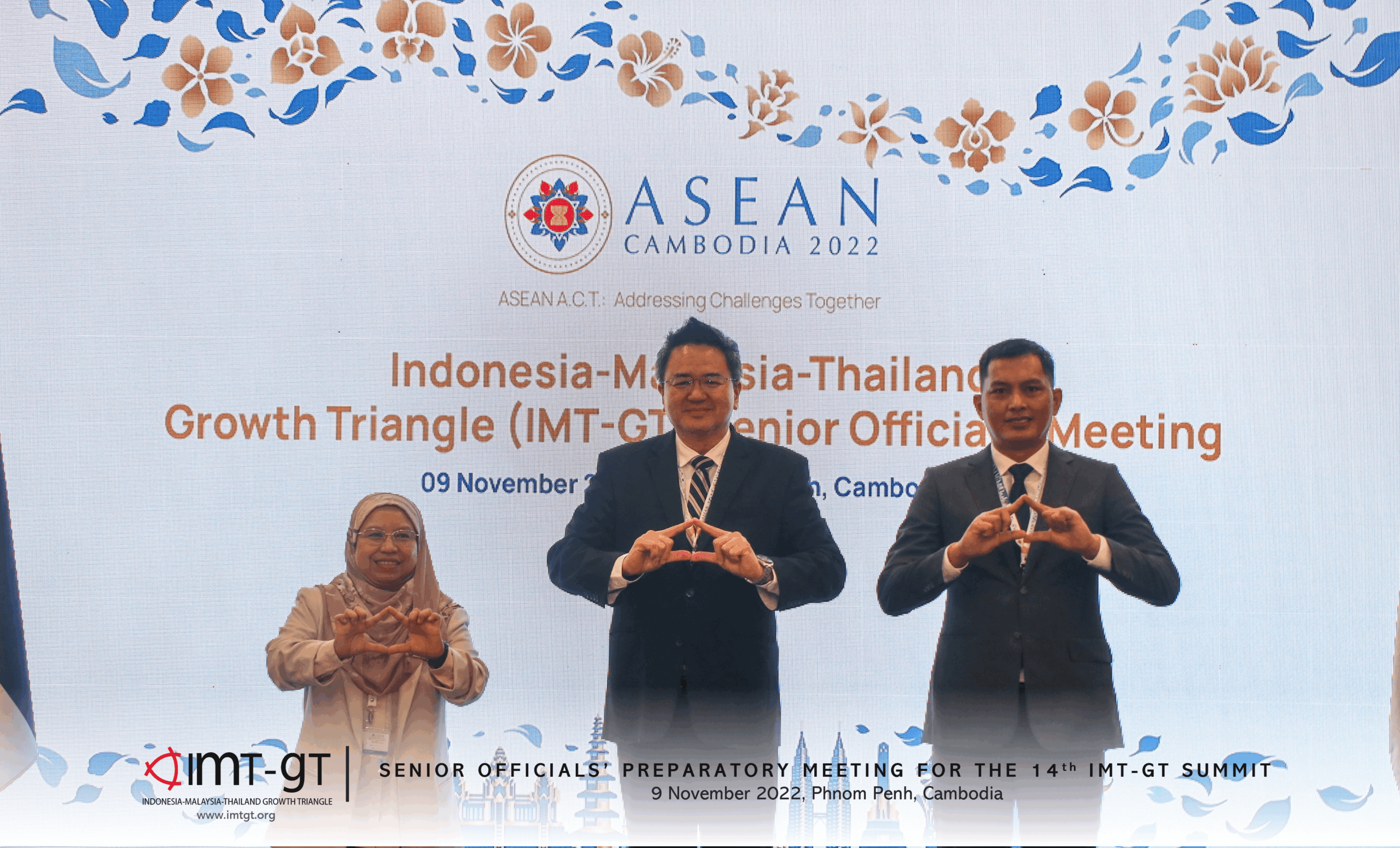 On 9 November 2022, the IMT-GT Senior Officials held a preparatory meeting for the 14th IMT-GT Summit, in Phnom Penh, Cambodia. The meeting was chaired by Dr. Wanchat Suwankitti, Deputy Secretary General of National Economic and Social Development Council (NESDC) of Thailand. The Indonesia delegation was led by Mr. Irfan Permadi, Head of Division for APEC and Sub Regional Economic Cooperation, Coordinating Ministry of Economic Affairs of Republic of Indonesia, whilst Malaysia delegation was led by Hon. Datuk Dr. Zunika binti Mohamed, Acting Director General, Economic Planning Unit (EPU), Prime Minister’s Department of Malaysia. The meeting was also attended by Mr. Alfredo Perdiguero, Director of Regional Cooperation and Operations Coordination Division, Southeast Asia Department for Asian Development Bank (ADB), Mr. Rifki Weno, Senior Officer of Enterprise & Stakeholders Engagement Division for ASEAN Secretariat and Mr. Firdaus Dahlan, Director of the Centre for IMT-GT Subregional Cooperation (CIMT).