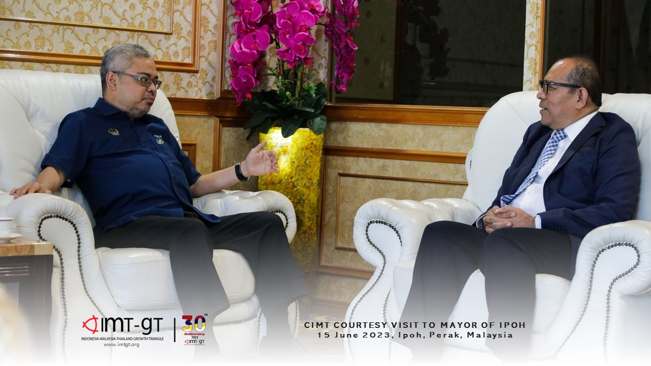 On 15 June 2023, Mr. Firdaus Dahlan, Director of the Centre for Indonesia-Malaysia-Thailand Growth Triangle (IMT-GT) Subregional Cooperation (CIMT), paid a courtesy visit to Mayor of Ipoh, Datuk Rumaizi Baharin. Mr. Firdaus Dahlan was accompanied by Ms. Melissa Mokhtar, Deputy Director of CIMT, Mrs. Raja Saza Nur Aquilla and Mr. Heriawan, Project Coordinators of CIMT.