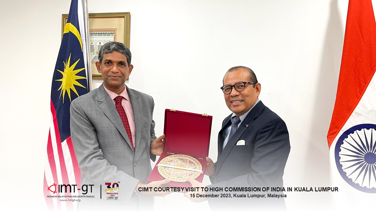 On the 15th of December 2023, Mr. Firdaus Dahlan, Director of CIMT, was warmly received by H.E. Mr. B.N. Reddy, the High Commissioner of India in Kuala Lumpur. This meeting was intended to discuss the follow up action the partnership cooperation between IMT-GT and India. The meeting focused on the follow-up actions for the IMT-GT and India partnership, discussing the Plan of Action and Early Harvest Project for 2024. Furthermore, the meeting also encompassed a detailed discussion about the financial arrangements for the project. Both parties engaged in a comprehensive dialogue about the financing strategies to ensure the project’s successful execution. This meeting, thus, marked a significant step forward in the IMT-GT and India partnership.