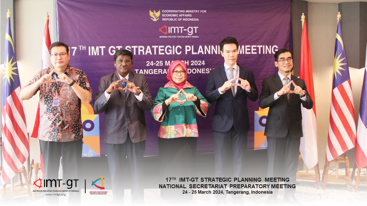 The IMT-GT National Secretariats of Indonesia, Malaysia, and Thailand, along with the Asian Development Bank (ADB) and CIMT, convened a preparatory meeting for the 17th IMT-GT Strategic Planning Meeting on 24 March 2024 in Tangerang, Indonesia. The meeting addressed administrative and substantive preparations for the 17th IMT-GT SPM Plenary Session. The National Secretariats of the three countries and the ADB were represented by Mrs. Netty Muharni (NS Indonesia), Mr. Paarteeben Subramaniam (NS Malaysia), Dr. Thuttai Keeratipongpaiboon (NS Thailand), and Mr. Gary Krishnan (ADB).