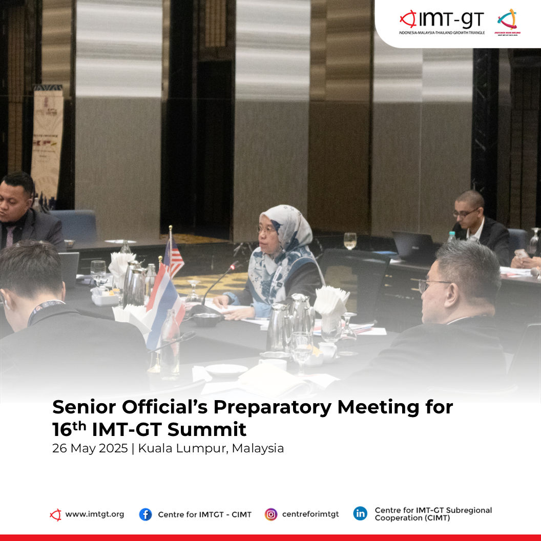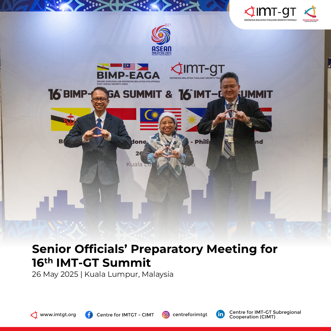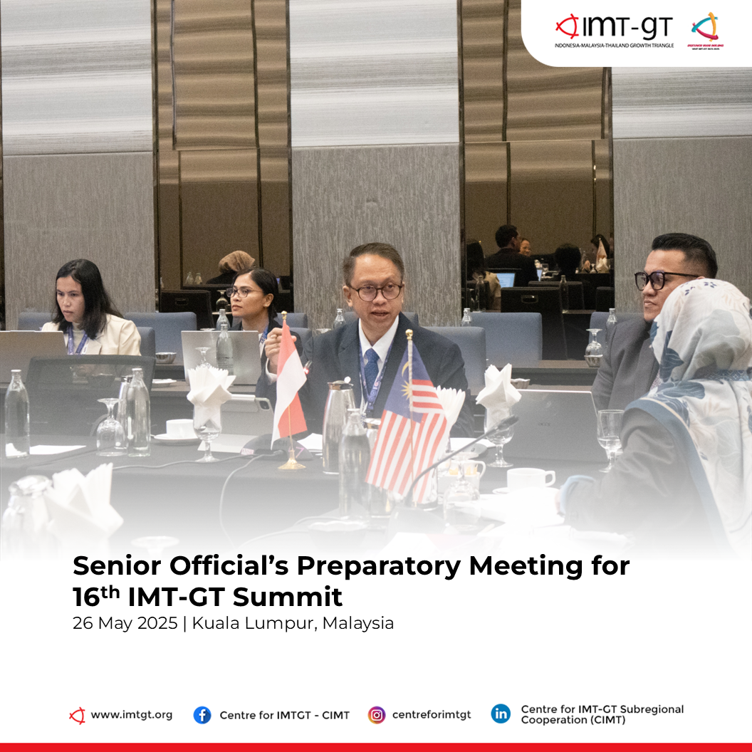 On 26 May 2025, the IMT-GT Senior Officials convened in Kuala Lumpur, Malaysia for the Preparatory Meeting for the 16th IMT-GT Summit. The meeting brought together key representatives from Indonesia, Malaysia, and Thailand together with the ASEAN Secretariat, Asian Development Bank (ADB), and the Centre for IMT-GT Subregional Cooperation (CIMT) to ensure the necessary preparation and smooth execution of the Summit.
